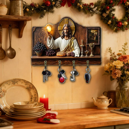 🎁✝️ Porta-chaves multifuncional de madeira - Jesus 💖