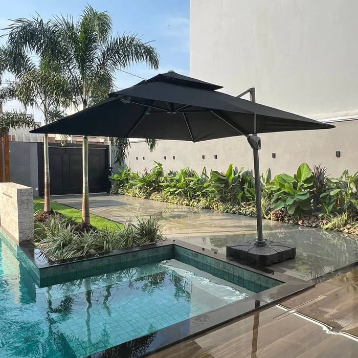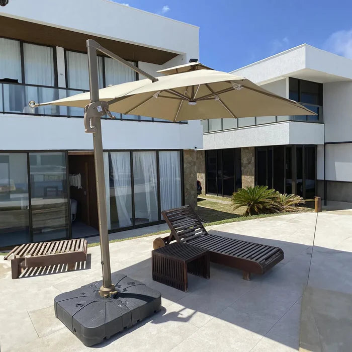 A base plástica de 130 litros oferece estabilidade excepcional, garantindo que seu ombrelone permaneça firme mesmo em condições de vento. Perfeito para piscinas, jardins, áreas de lazer, lounges e qualquer ambiente externo que precise de proteção solar e estilo.